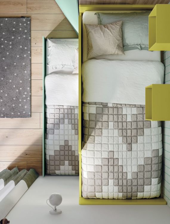 Camere accoglienti ed ordinate, progettate a misura di bambino. Luoghi dove sognare, giocare, studiare e al contempo capaci di contenere e organizzare.